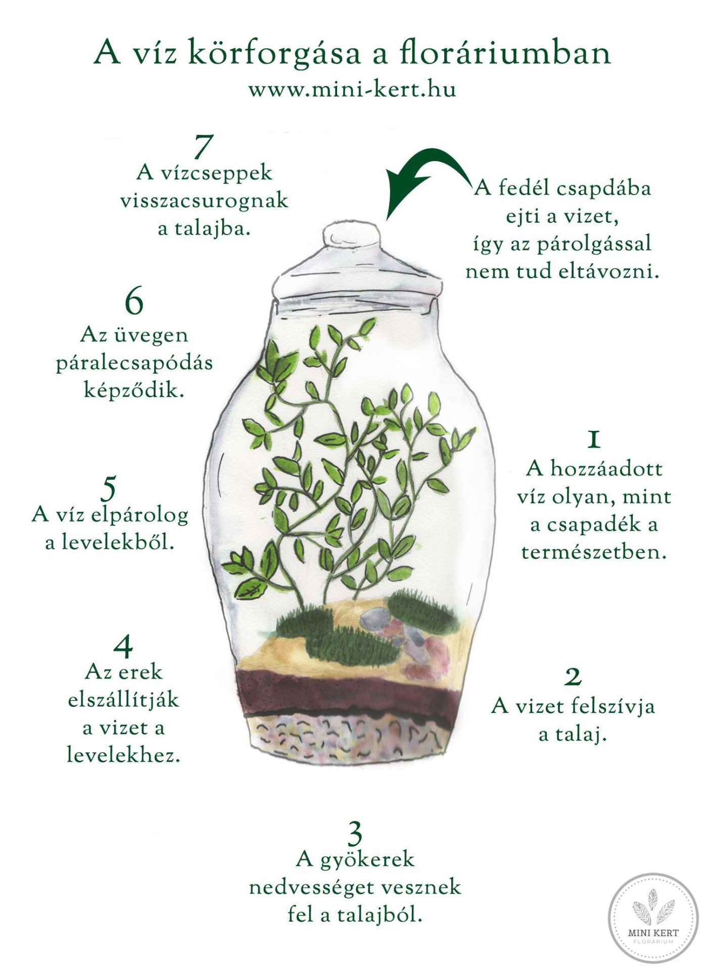 A florárium tulajdonképpen egy mini ökoszisztéma, mert ugyanaz történik benne, mint a természetben – csak nagyon kis méretben. A florárium azért mini ökoszisztéma, mert: van benne élőlény (növény), környezet (víz, levegő, talaj), és ezek folyamatosan hatnak egymásra.