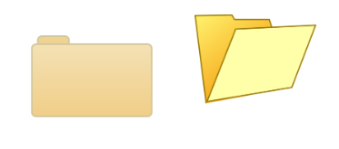 A mappák jelölése általában sárga színű nyitott vagy zárt dosszié.