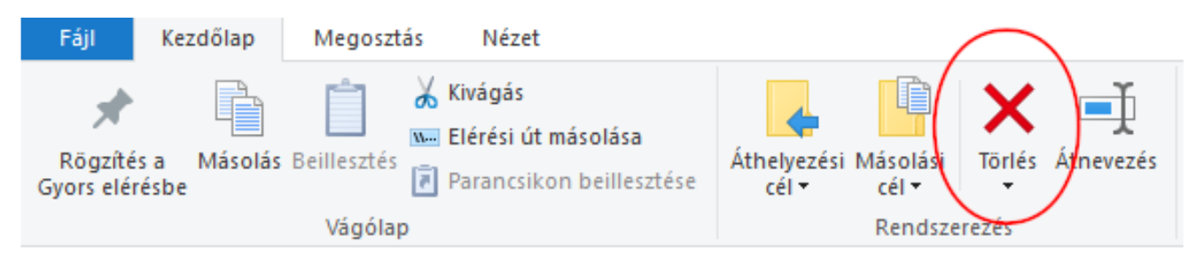 Kattints egyet a bal gombbal a törlendő mappára. Ekkor a menüszalagon aktív lesz a Törlés parancs.