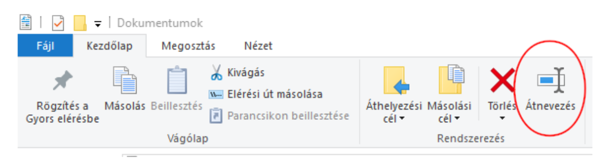 Kattints bal gombbal az átnevezendő mappára! A menüszalagon lévő Átnevezés ikont használd!
