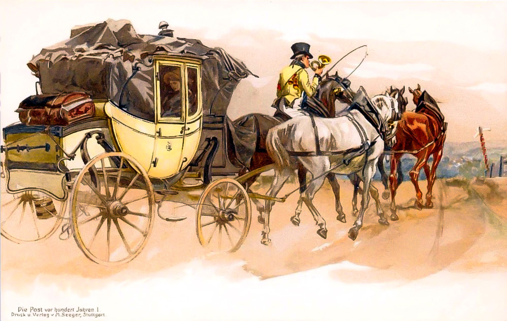A postások először lovas kocsikkal szállították az üzeneteket.