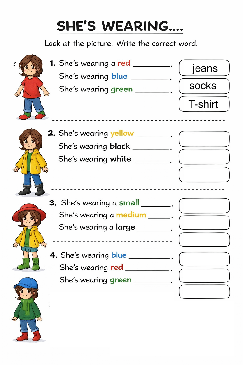 3. What colour T-shirt does she want?