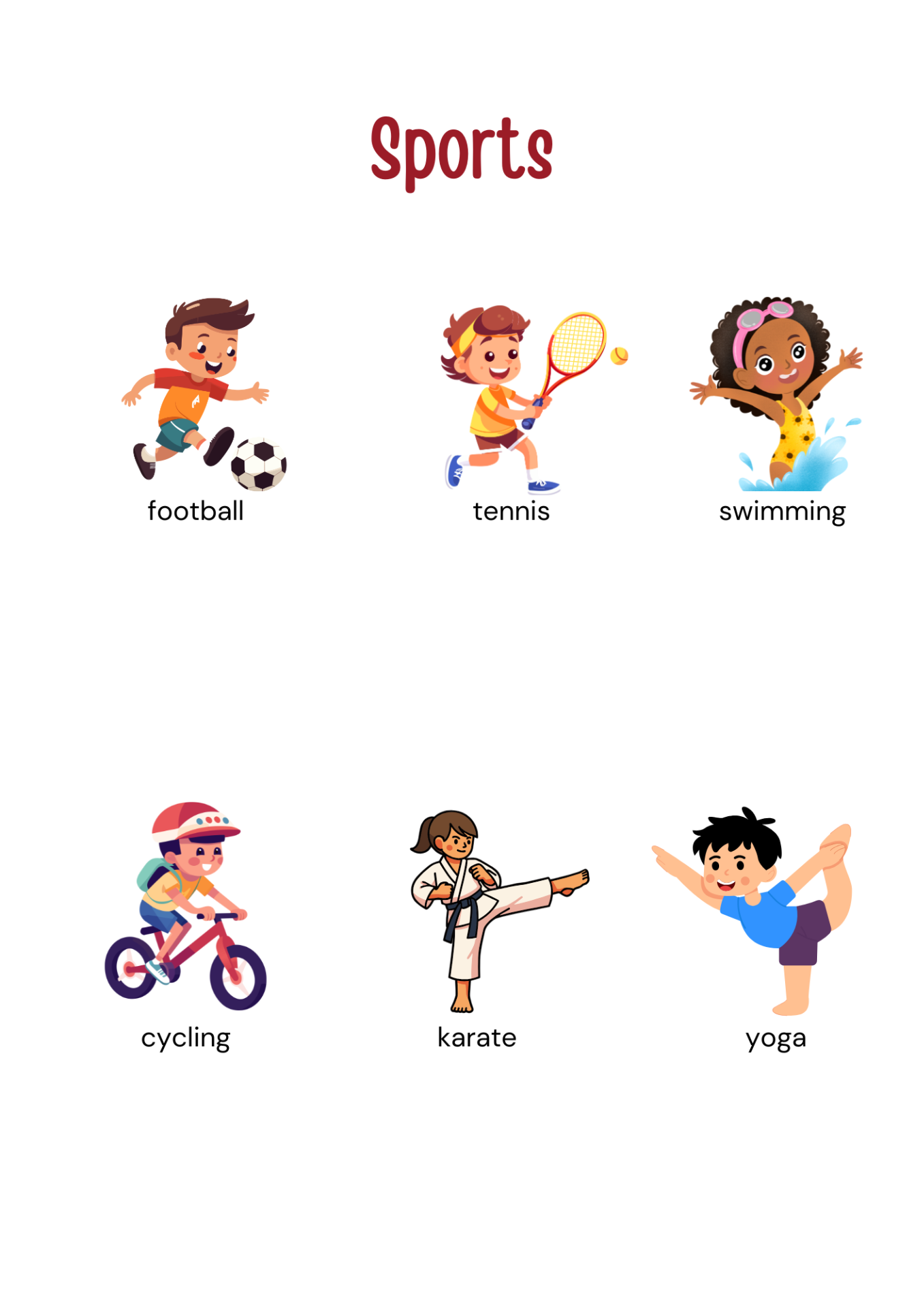 Ask me questions only about these sports: football, tennis, swimming, cycling, karate, yoga.