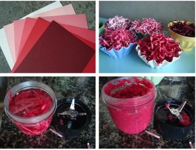A papírt összetépjük vagy ledaráljuk, vízzel összekeverjük, és pépet csinálunk belőle.